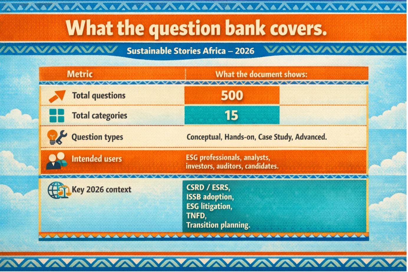 That matters for African public companies because many are still staffing ESG as if it were mostly communications, stakeholder relations or annual-report production. The question bank suggests the opposite.