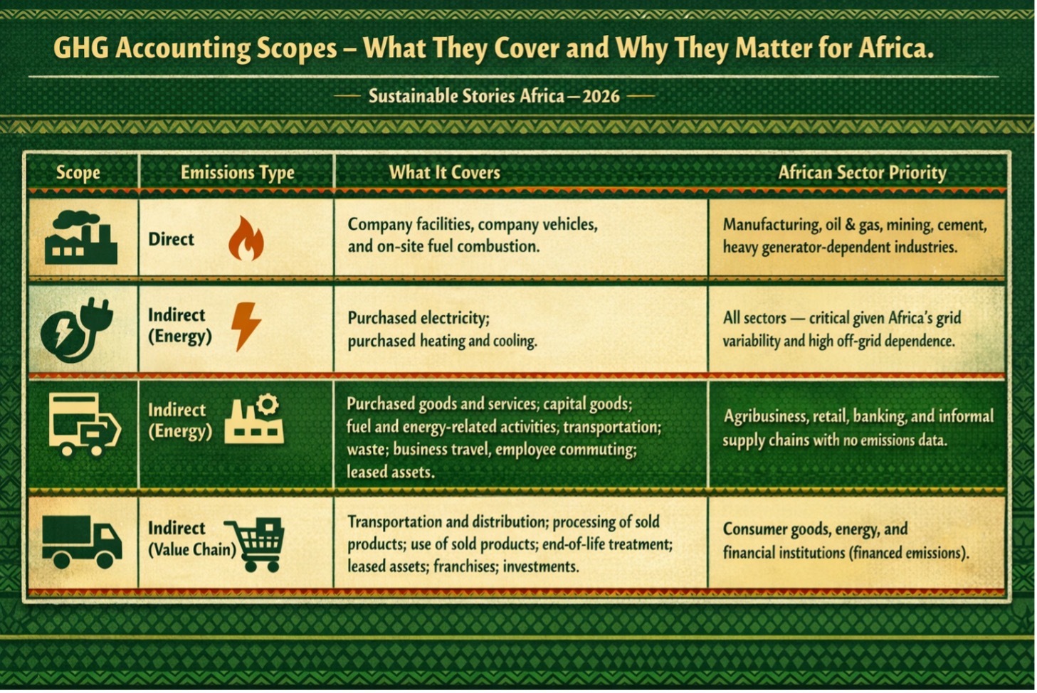 | Scope | Emissions Type | What It Covers | African Sector Priority |