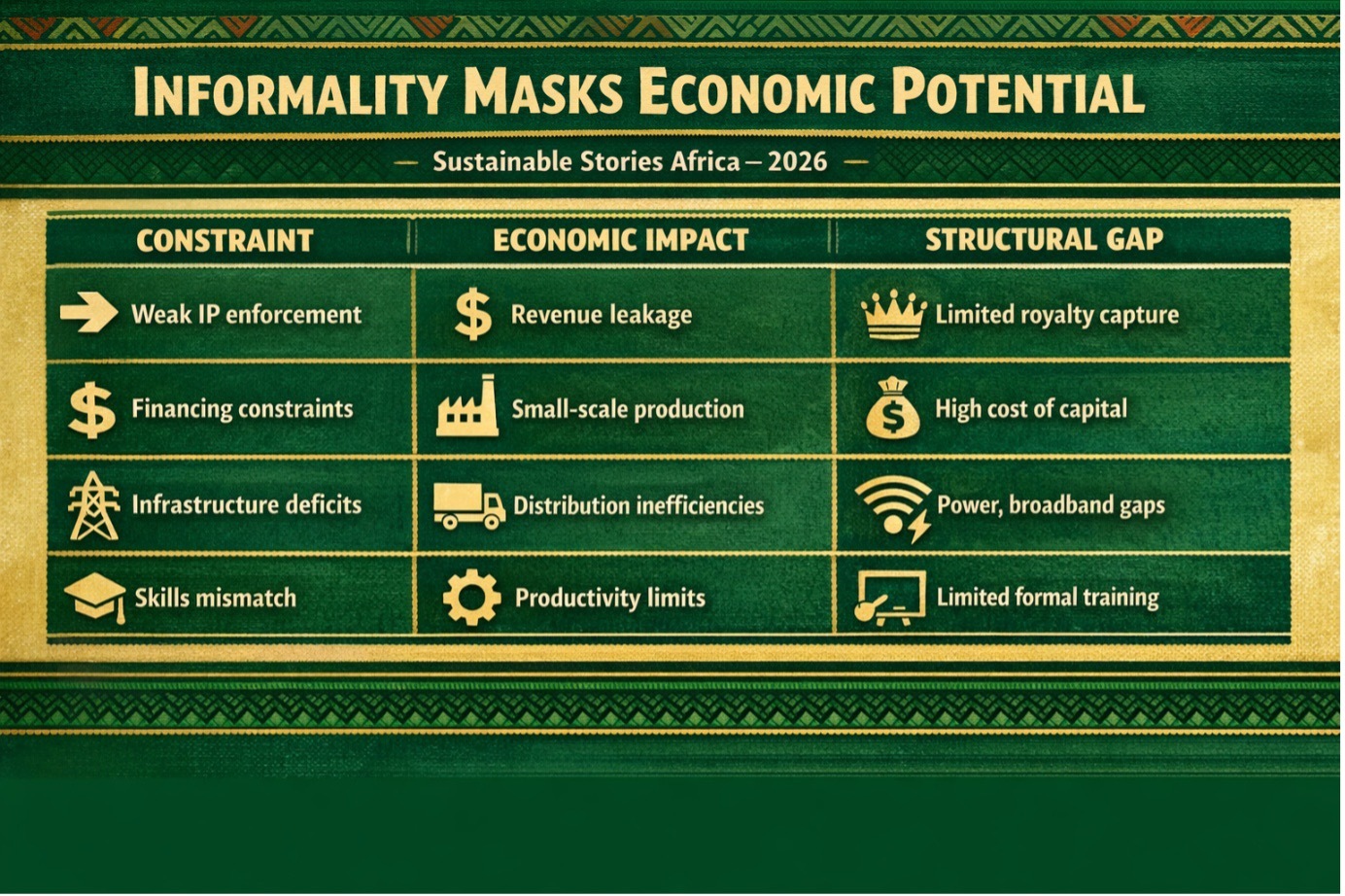 Despite momentum, much of Africa’s creative output operates informally.
