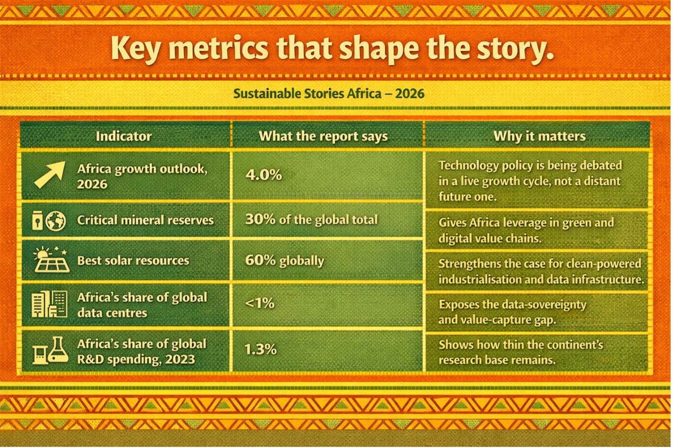 Africa’s opening is significant. The report says the continent holds about 30% of the world’s critical mineral reserves and 60% of its best solar resources, while growth is expected to reach 4.0% in 2026.