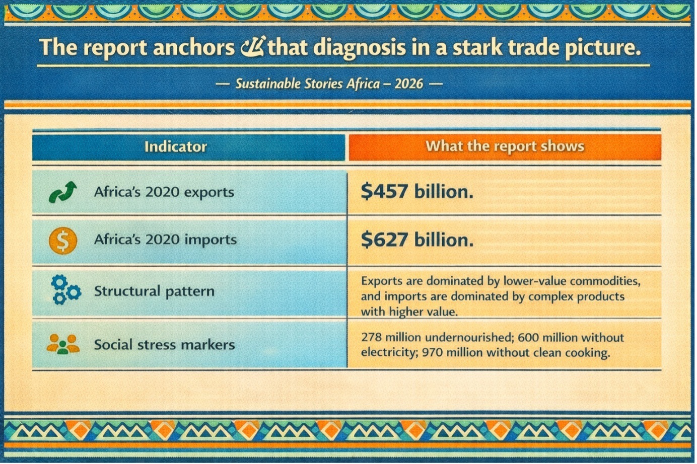 The report’s most important insight is that Africa’s climate debate is inseparable from its trade and debt structure. It identifies three persistent weaknesses: