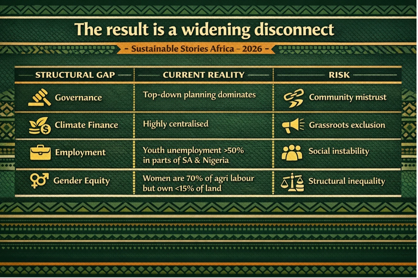 The pattern is clear: climate ambition without community agency creates procedural injustice.