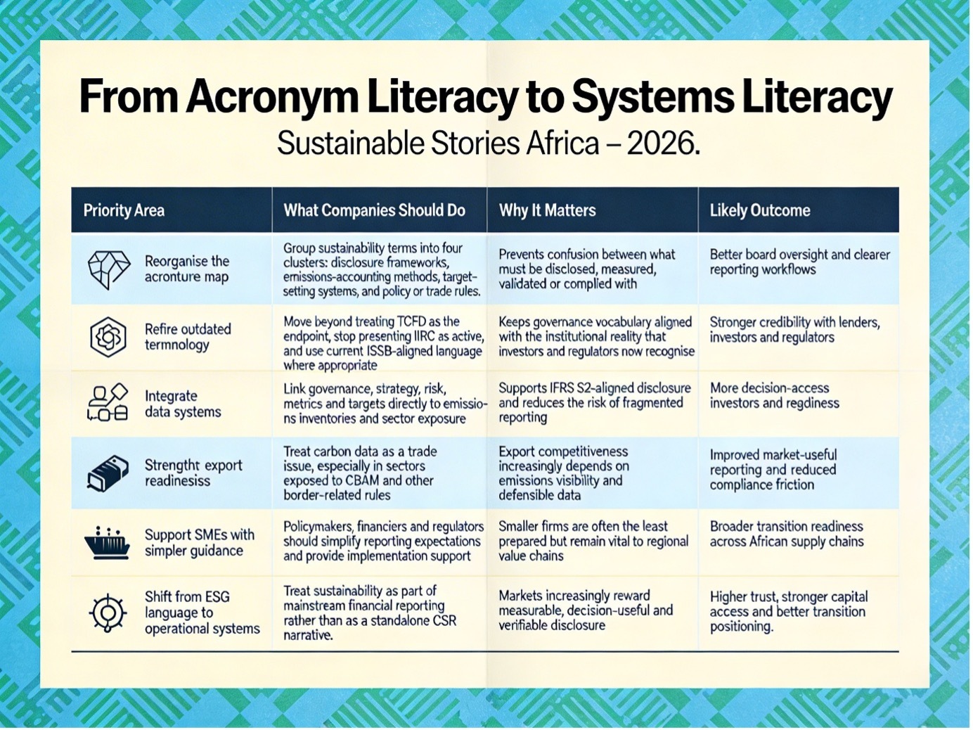 African markets do not need more acronym clutter. They need clearer translation between disclosure rules, emissions accounting, targets and trade obligations.