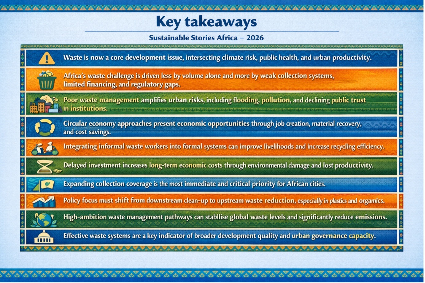 African cities will need faster collection expansion, firmer local regulation, better financing models and deeper support for recycling, composting and informal-worker integration.