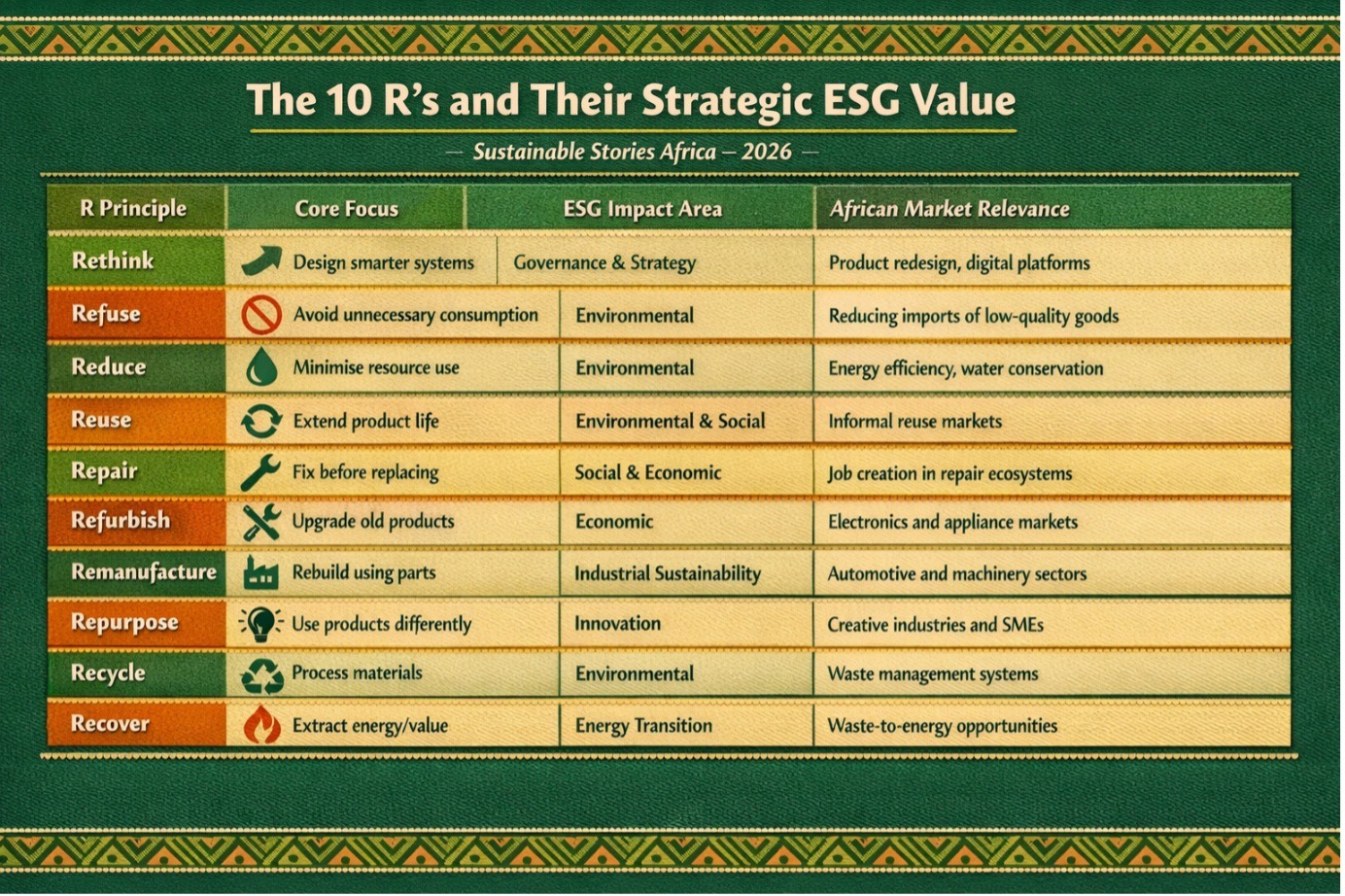 As ESG compliance tightens globally, African markets are finding practical answers in circular economy models. The “10 R’s of Circularity” are emerging not just as sustainability principles, but as strategic tools for cost efficiency, resilience, and regulatory alignment.