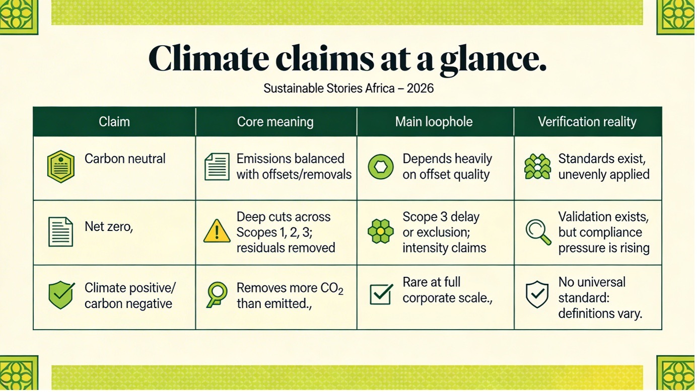 Climate promises are everywhere, but their meanings are not equal. From “carbon neutral” to “climate positive”, the labels often rest on very different levels of emissions cuts, offsets and verification.