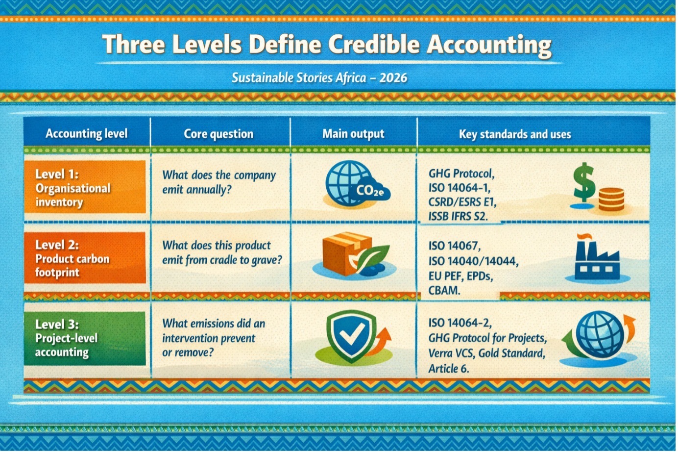 African companies should treat carbon accounting as business infrastructure: build full Scope 1, 2 and 3 inventories, measure product footprints, and apply rigorous project-accounting rules before making claims.