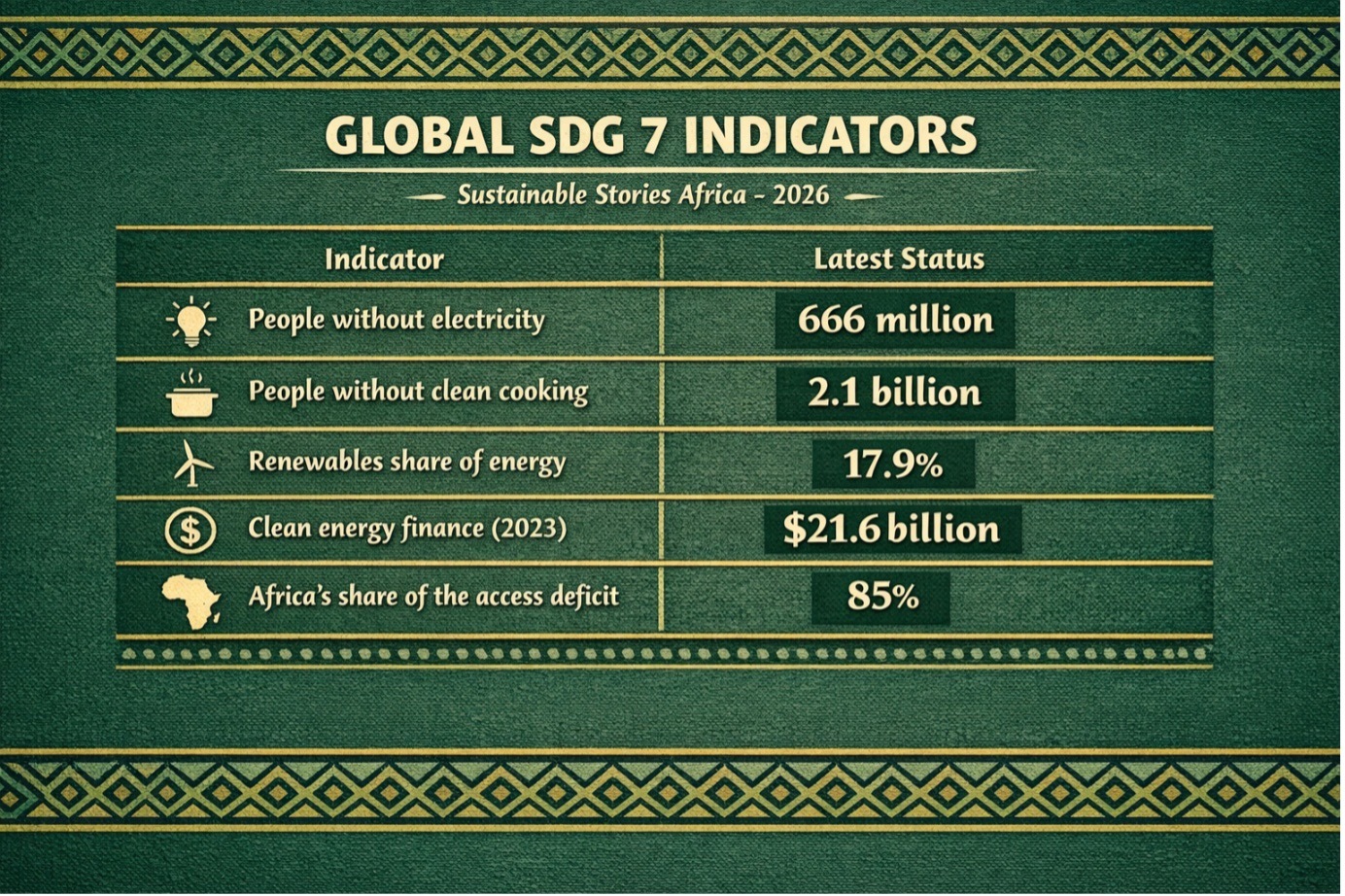 Clean cooking remains the most stubborn SDG 7 target. Despite modest gains, 2.1 billion people still rely on polluting fuels, with Sub-Saharan Africa adding 14 million people annually to this number. Women and children bear the brunt, facing health risks and lost educational opportunities.