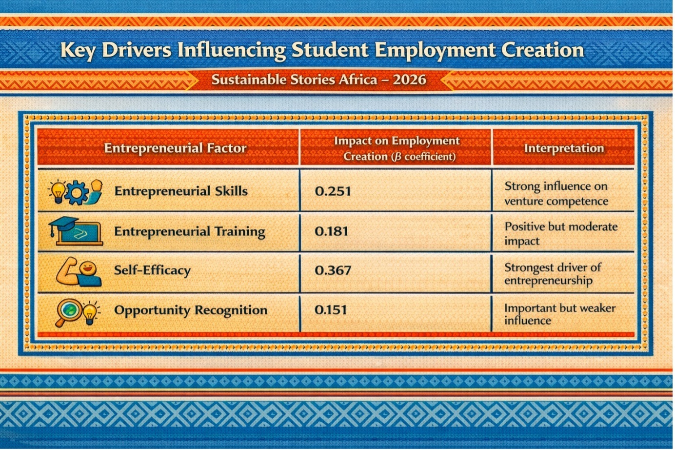 Entrepreneurial Factor | Impact on Employment Creation (β coefficient) | Interpretation |
