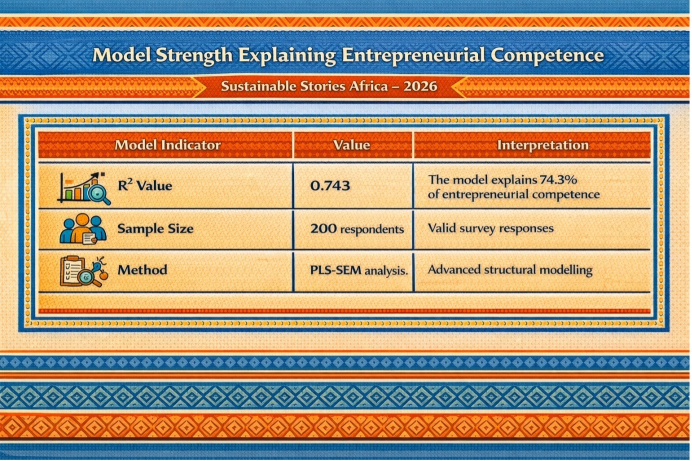 Using Partial Least Squares Structural Equation Modelling (PLS-SEM) to analyse 200 valid survey responses, researchers discovered that these factors collectively explain 74.3% of entrepreneurial competence among students.