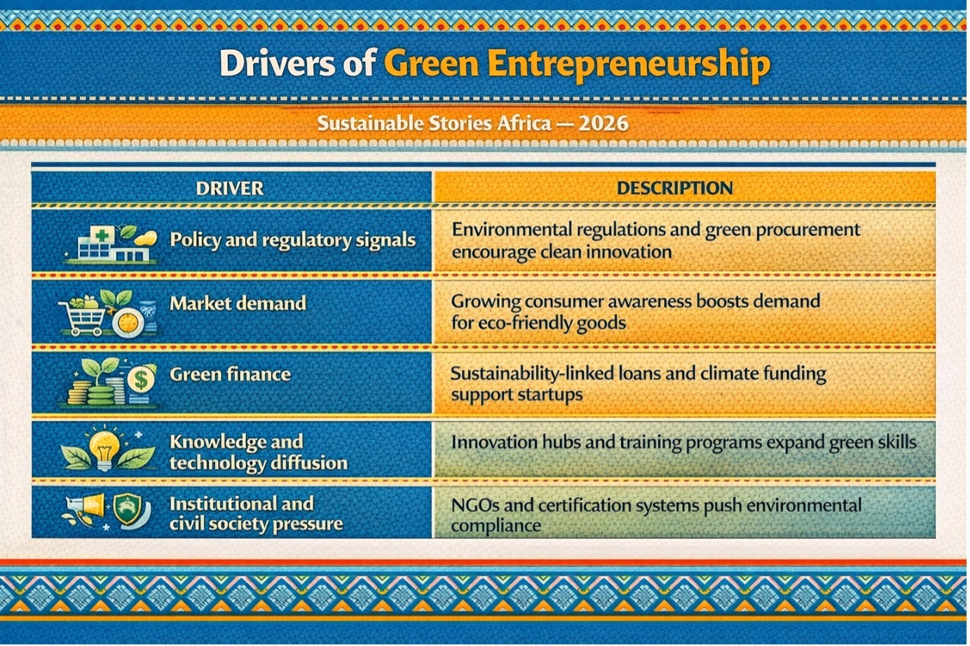 The research identifies five core mechanisms shaping Nigeria’s emerging green business ecosystem.