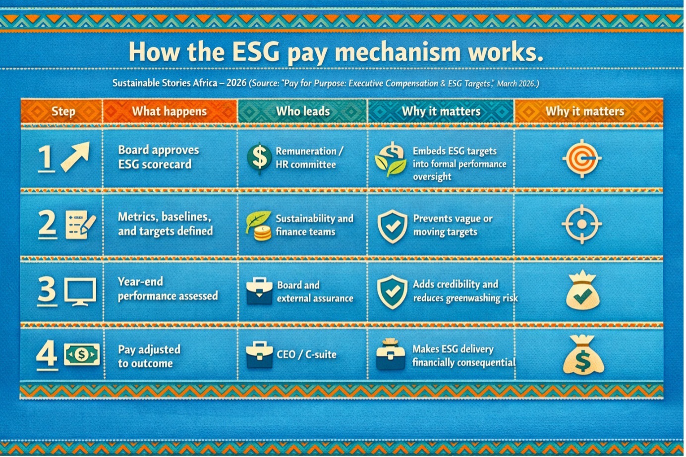 For African markets, the issue is especially important. As companies navigate tighter disclosure expectations, capital market scrutiny, and rising climate-related risks, executive compensation is emerging as a visible sign of whether ESG commitments are operational, board-owned, and investable.