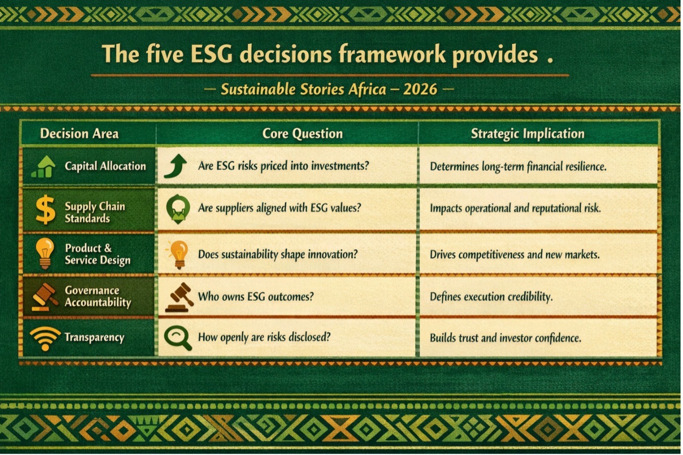 Across African markets, ESG is shifting from a reporting obligation to a strategic decision-making framework.