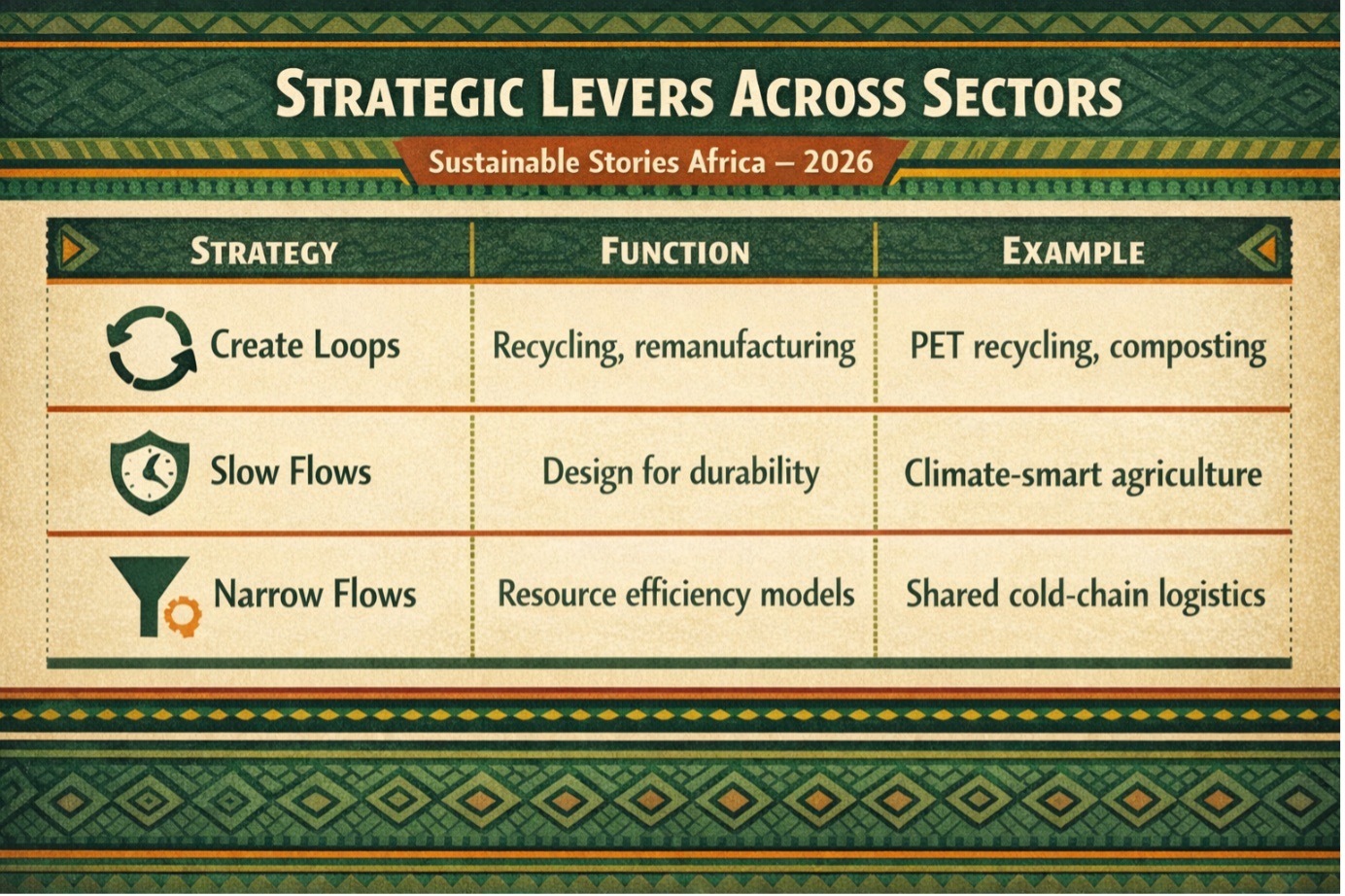 A 2017 continental assessment identified five sectors, including food systems, packaging, the built environment, electronics, and fashion, as high-impact entry points capable of unlocking green jobs, industrial competitiveness, and long-term economic resilience.