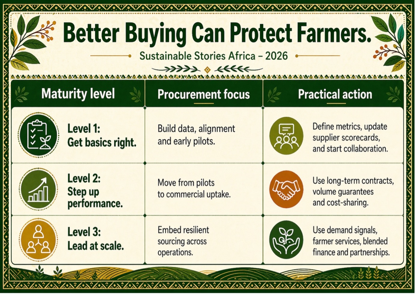 Companies, governments and financiers should align around long-term offtake, farmer services, traceability, blended finance and fair cost-sharing.