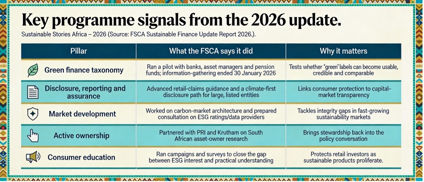 The FSCA’s update suggests that sustainable finance becomes more investable when regulators focus not just on ambition but on definitions, data integrity, proportionate supervision and consumer understanding. That is how trust compounds.
