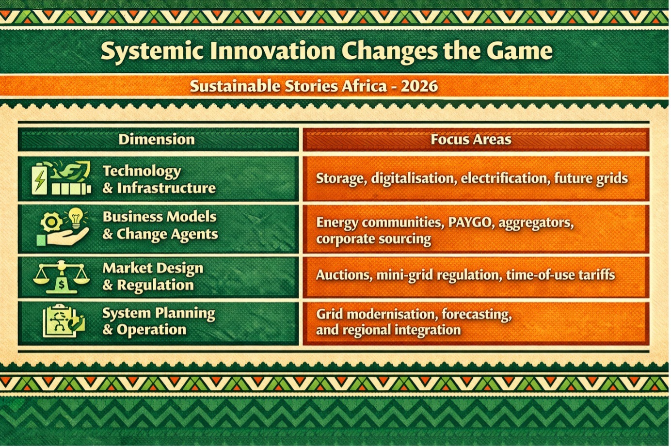 Systemic innovation is best understood as a toolkit, not a checklist. Countries are being urged to integrate grid upgrades, decentralised solutions, and inclusive business models in ways that fit their own energy systems and social realities.