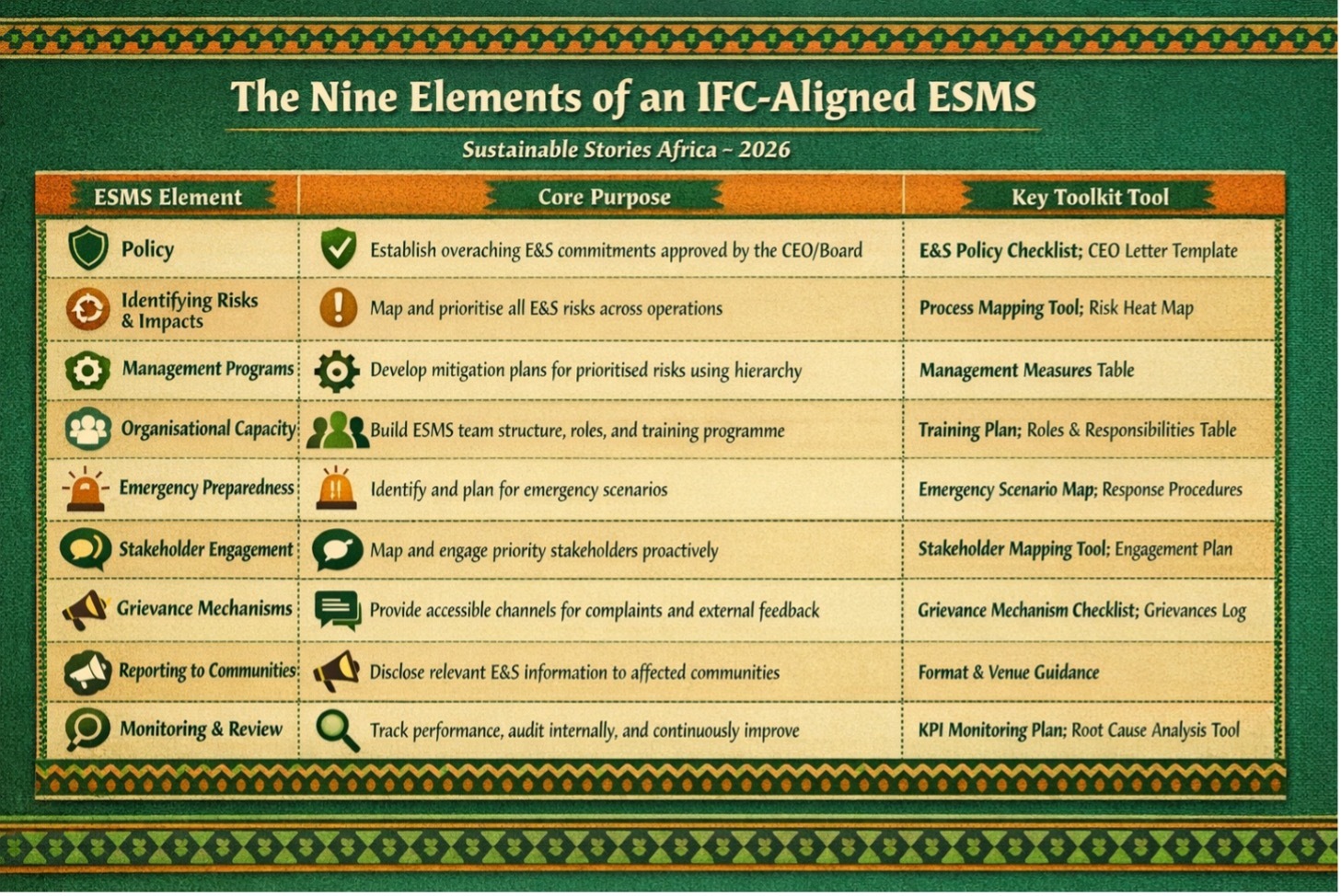 For African businesses seeking access to development finance, global supply chains, and international investors, the timing is decisive. IFC's Performance Standards govern nearly 90% of project financing in emerging markets, making ESMS alignment not an optional ESG exercise, but a structural prerequisite for competitive growth.