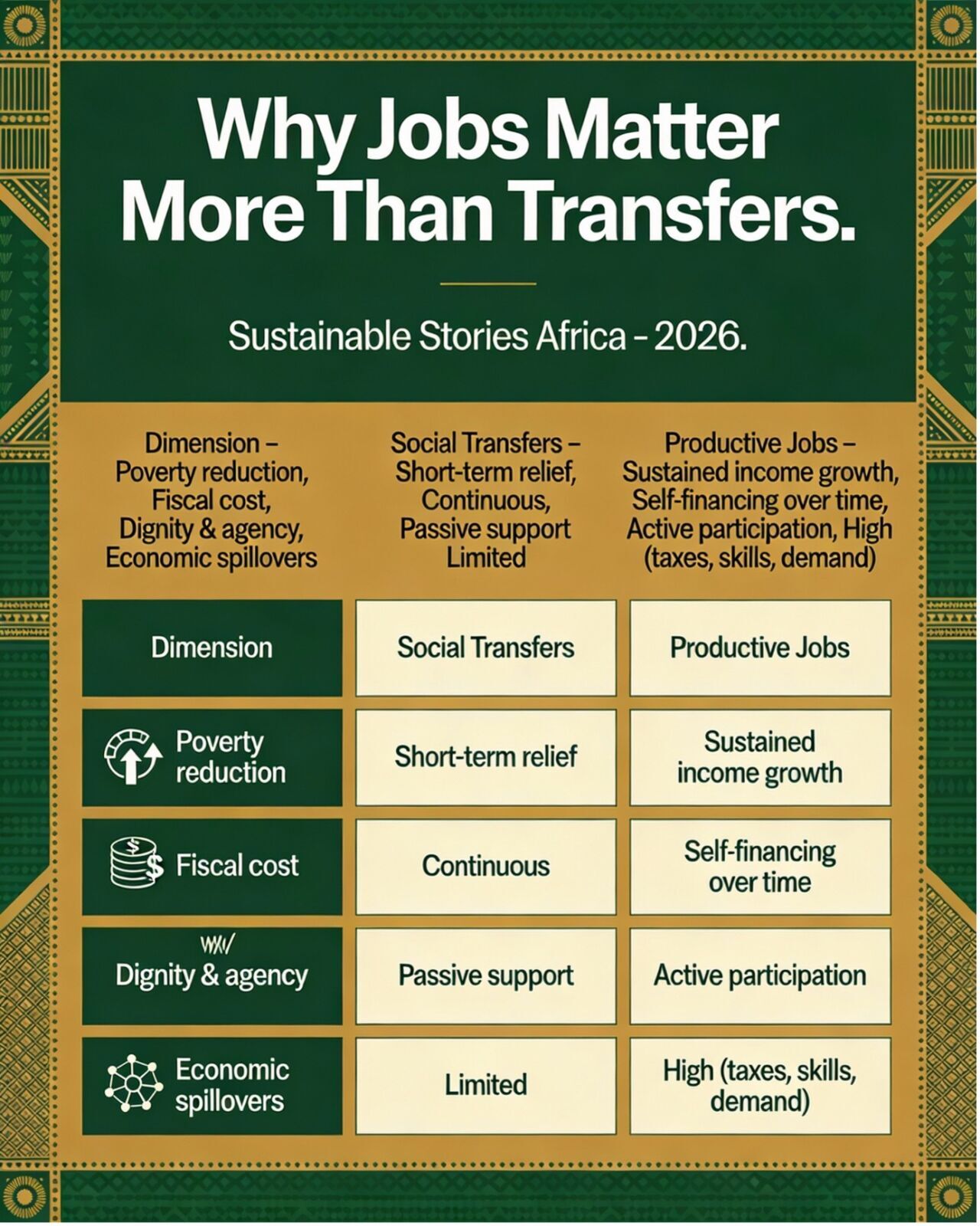 | Dimension | Social Transfers | Productive Jobs |