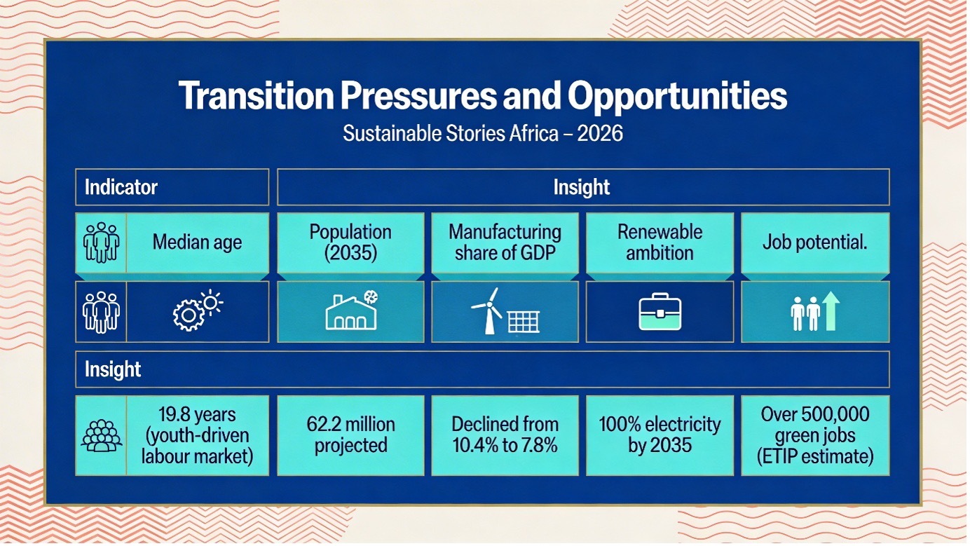 This data underscores a key tension: a young, rapidly growing workforce is entering a labour market not yet aligned with green economy demands.