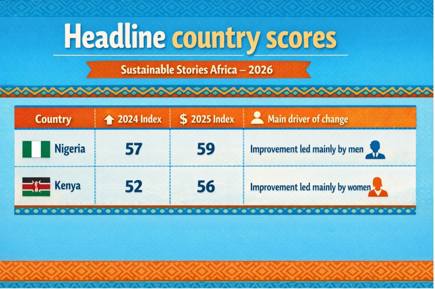 - Kenya’s jump was led by women, whose Index score rose sharply to 62 from 54, compared with men at 50, almost unchanged from 49 in 2024.