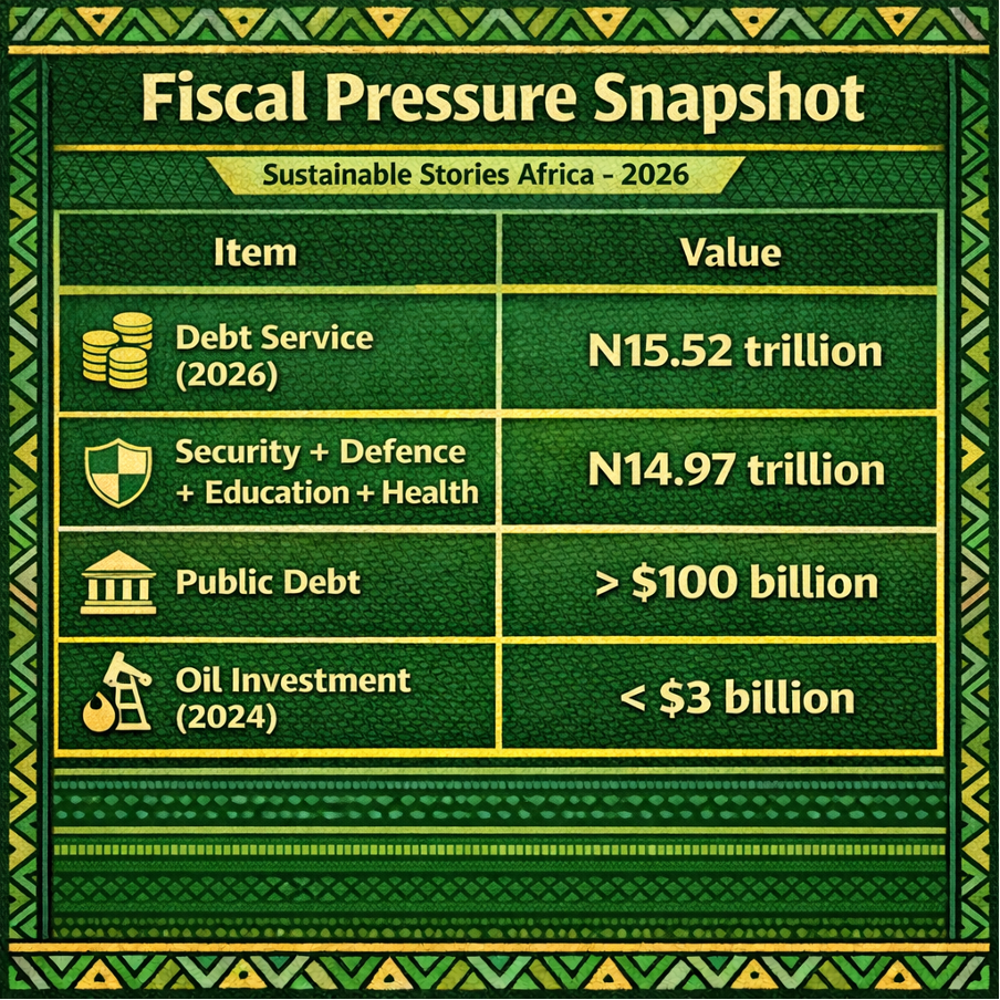 Nigeria's fiscal position is increasingly unsustainable. The N15.52 trillion 2026 debt-service bill exceeds combined spending on security, defence, education, and health. All fuel subsidy savings are now diverted to debt payments.