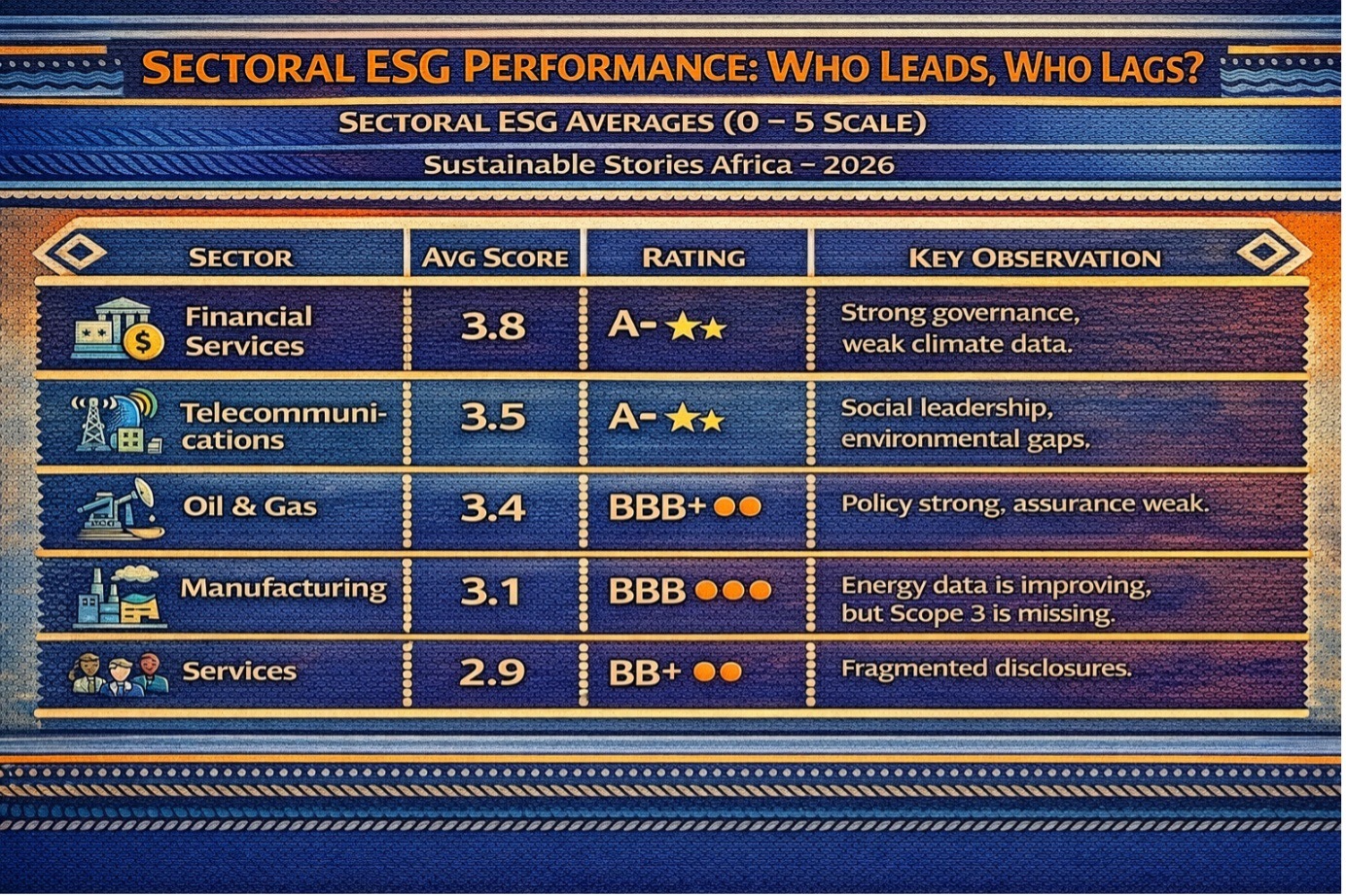 Sector | Avg Score | Rating | Key Observation |