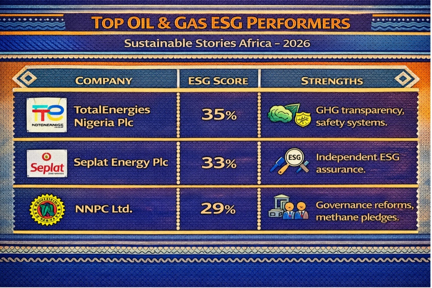NNPC Ltd | 29% | Governance reforms, methane pledges |