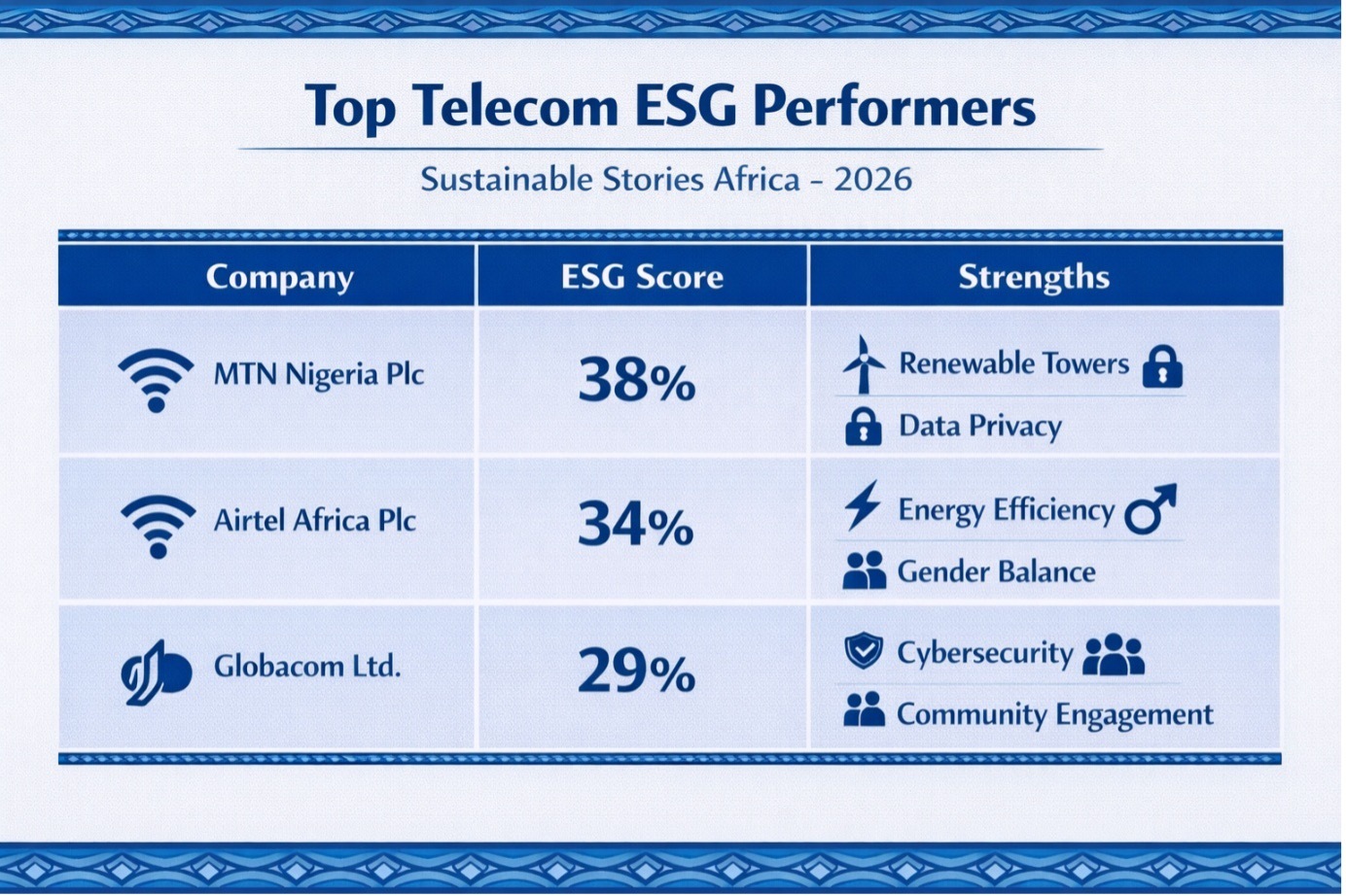 MTN Nigeria Plc | 38% | Renewable towers, data privacy |