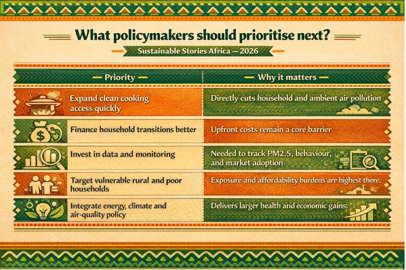 The path forward is scale with realism: cleaner fuels where possible, better stoves where necessary, stronger data, smarter finance and integrated delivery that meets households where they are. That is how clean air becomes a lived outcome, not just a policy target.