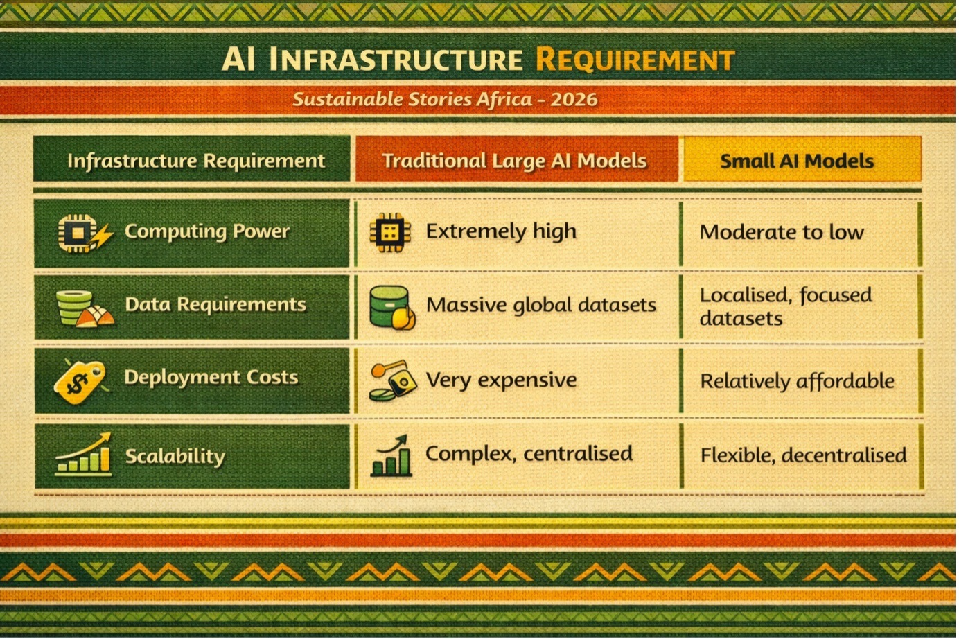One of the central challenges facing developing economies is the infrastructure gap. Large-scale AI systems require: