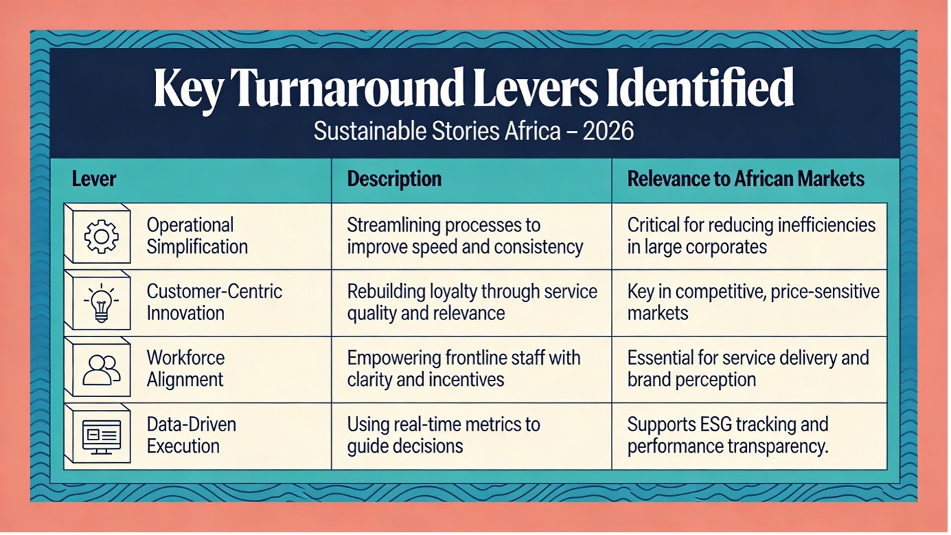 - Embed Accountability Across the Organisation – Turnaround success depends on frontline execution, not just boardroom strategy. Metrics must be clear, measurable, and owned.