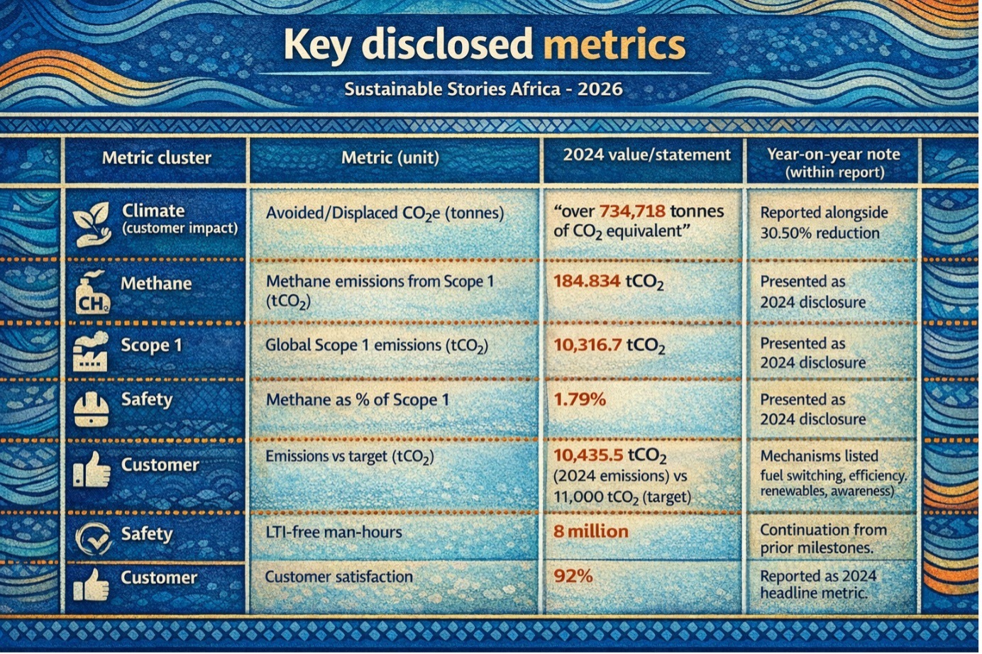 - Customer-side emissions outcome: 30.50% reduction and “over 734,718 tonnes of CO₂ equivalent” displaced (reported as a key result of “cleaner energy solutions”).