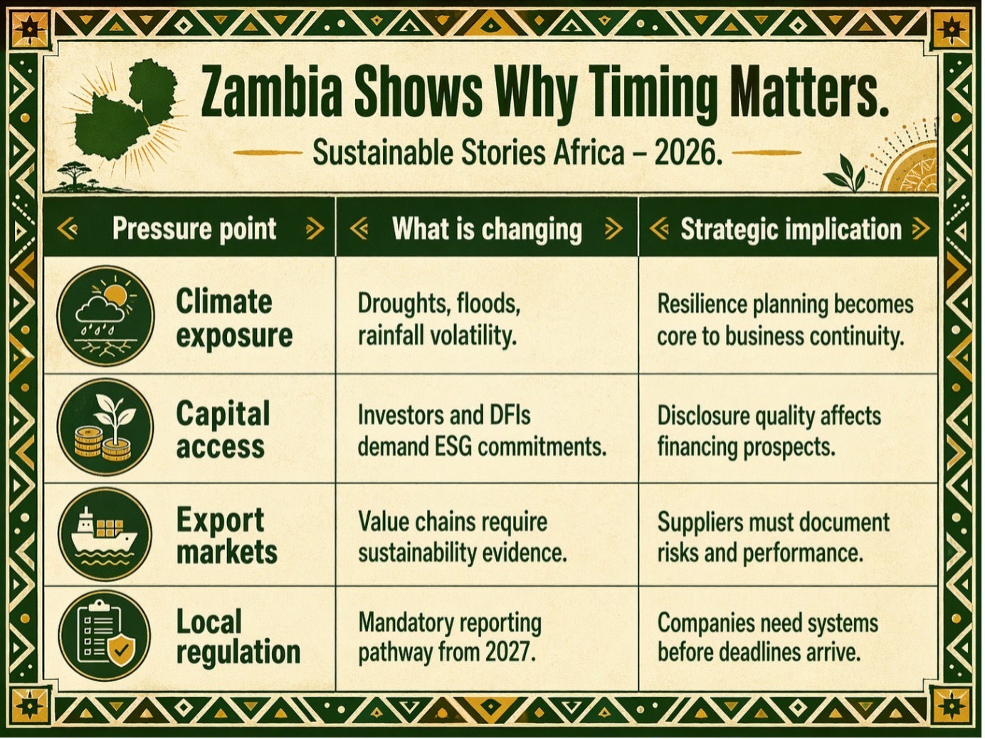 The Zambia Institute of Chartered Accountants has mandated full adoption of IFRS S1, IFRS S2, and Integrated Reporting from January 1, 2027.