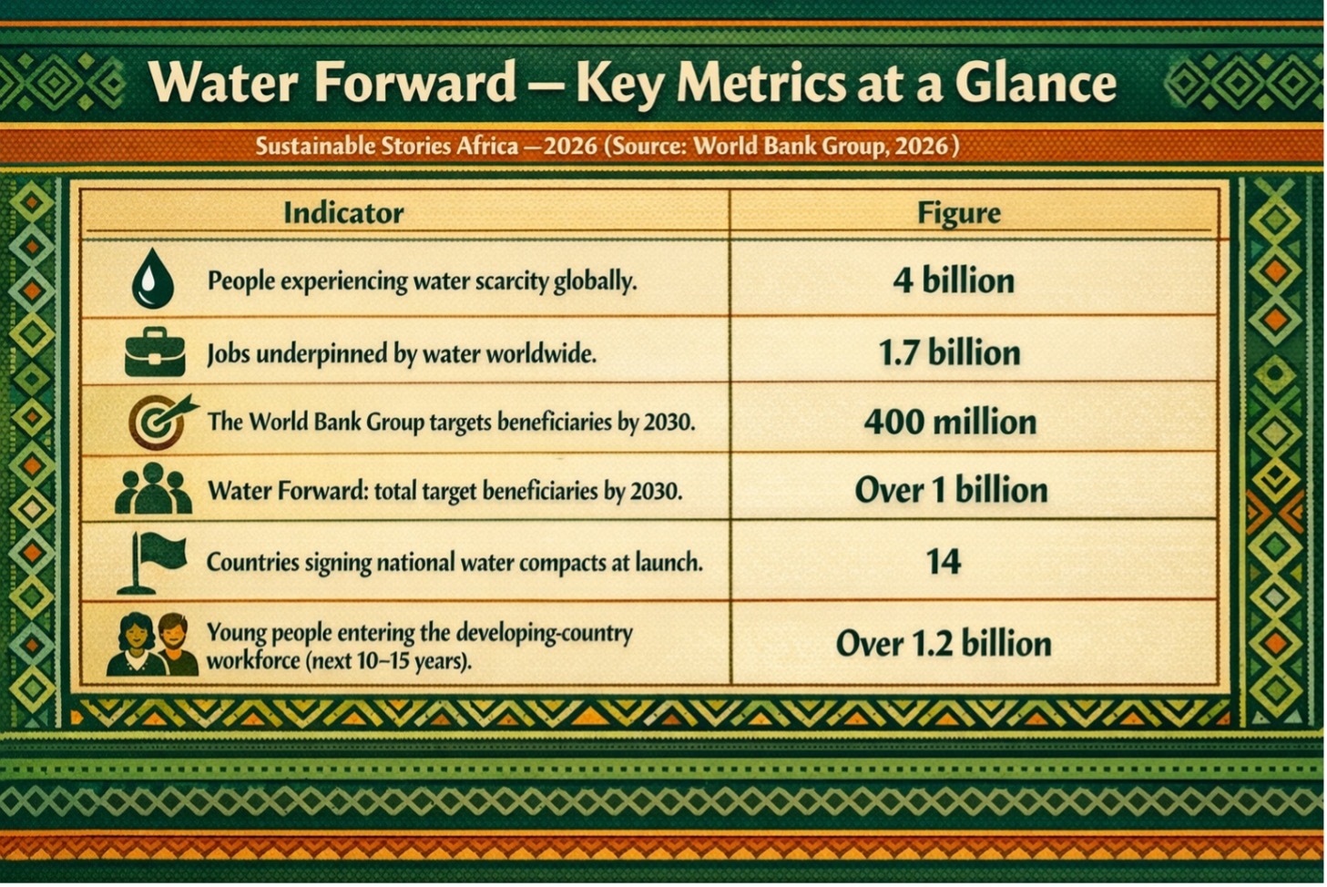 On April 15, 2026, the World Bank Group launched Water Forward, a transformative platform to deliver water security to more than one billion people by 2030. With 4 billion people facing water scarcity and 1.7 billion jobs at risk, the question is no longer whether water is an economic issue.