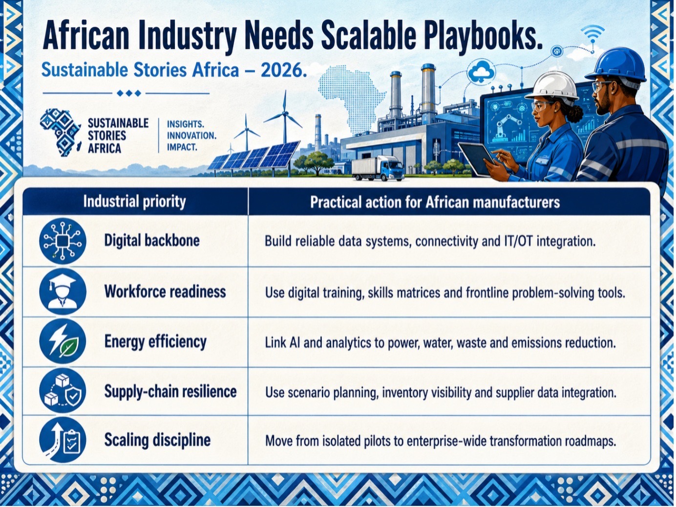 The implications are significant for African and Global South manufacturers. As tariffs, inflation, logistics disruptions, labour shortages and energy constraints reshape industrial competitiveness, the factories that win will be those that can combine technology, workforce capabilities and sustainability into a single operating system.