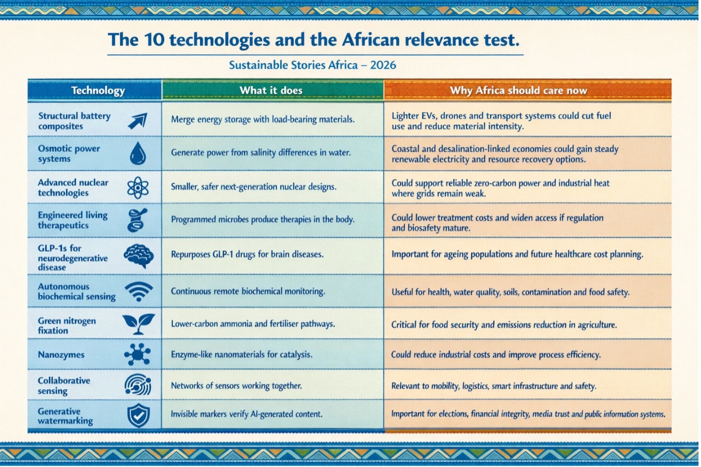 African policymakers and firms should treat the WEF list as a readiness agenda: pick the technologies closest to local bottlenecks, build regulatory and demonstration capacity, and align capital with adoption pathways rather than hype cycles.