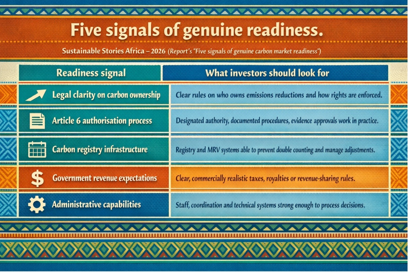 Those five signals amount to a practical readiness test for Africa’s next generation of carbon projects.