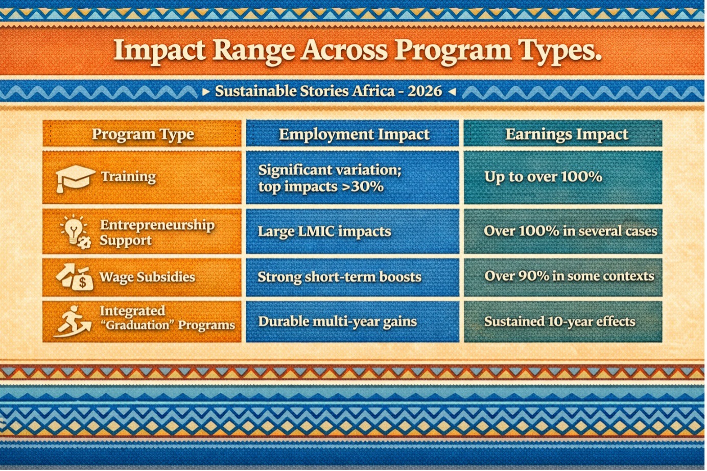 Even in fragile settings, programs can be effective. In Afghanistan, a graduation intervention program produced a 32% increase in income after five years. In Côte d’Ivoire’s post-conflict areas, formal apprenticeships raised youth earnings by 15% four years later.