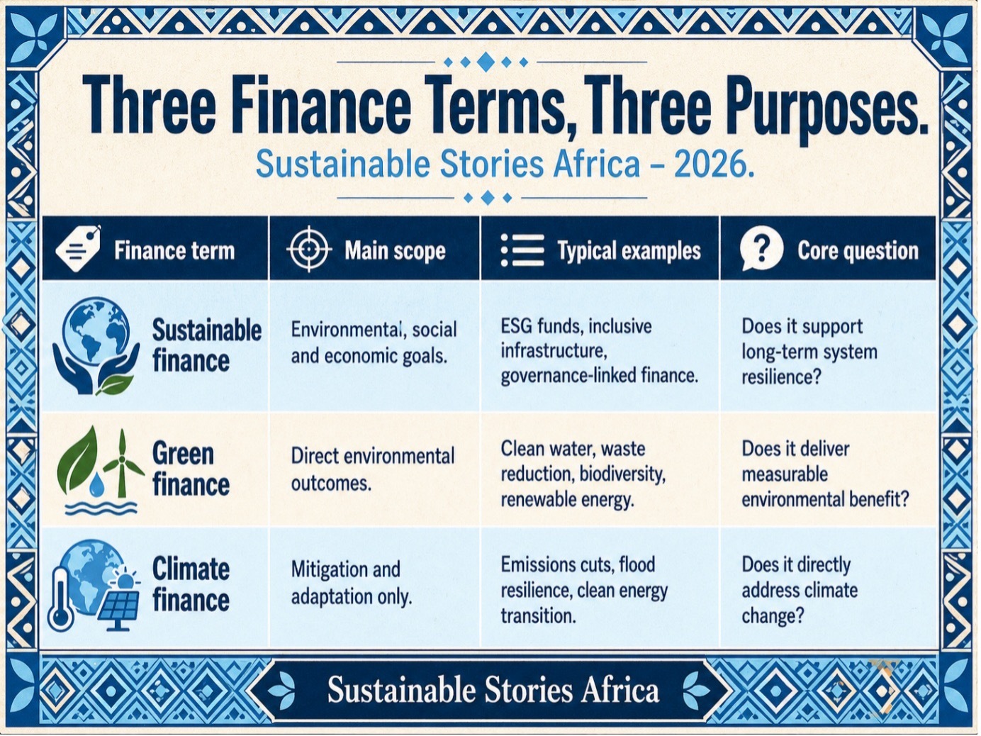 In sustainable finance, language can move money. That is why the difference between sustainable finance, green finance and climate finance matters for governments, investors, companies and communities trying to turn ESG commitments into measurable development outcomes.