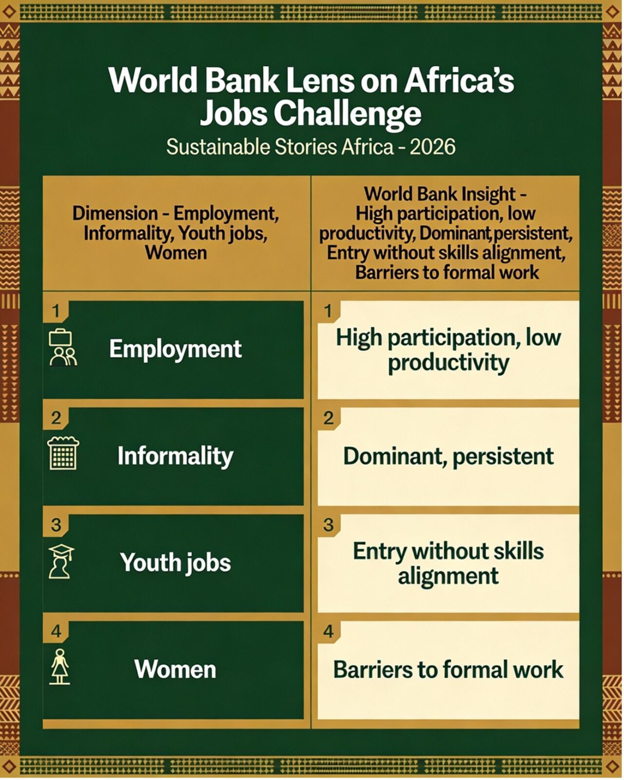 Not all jobs reduce poverty; only the productive jobs do. The review highlights a central challenge: most Africans work, but too many remain trapped in low-productivity informal employment.