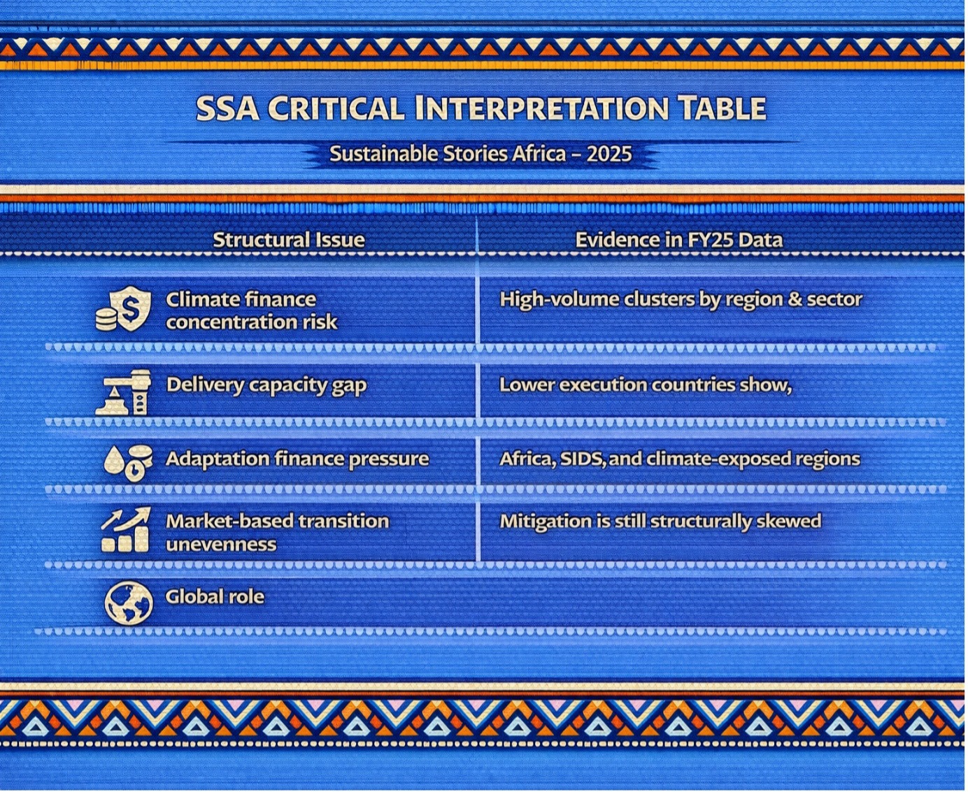 | Adaptation finance pressure | Africa, SIDS, and climate-exposed regions |