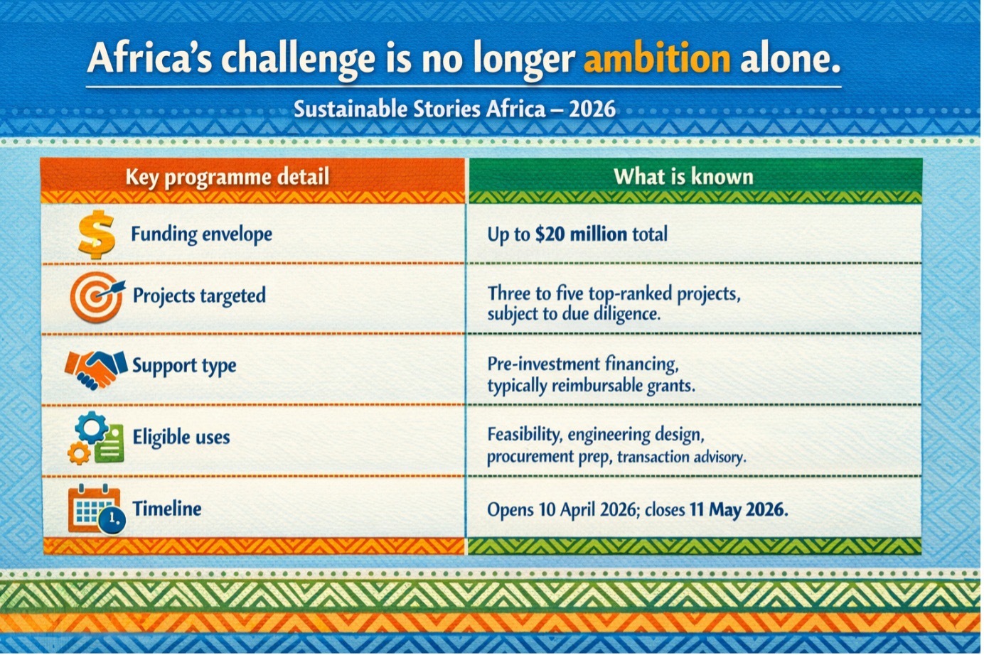 AfDB’s funding call is a useful intervention precisely because it targets that missing middle between concept and capital.