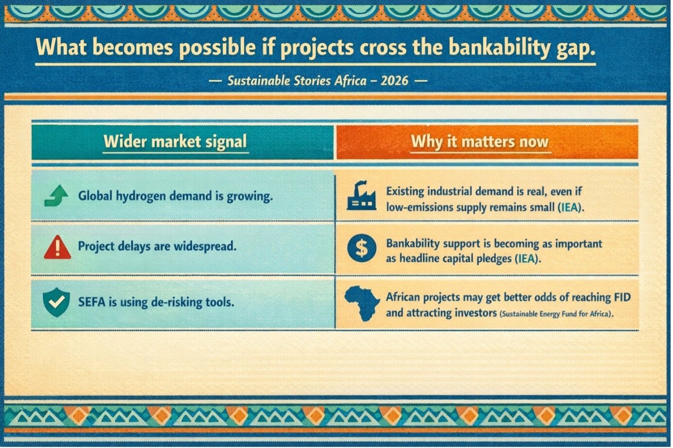For policymakers, developers and financiers, the message is straightforward: Africa does not just need more hydrogen announcements; it needs commercially disciplined projects with credible offtake, engineering depth, realistic timelines and strong regulatory footing.