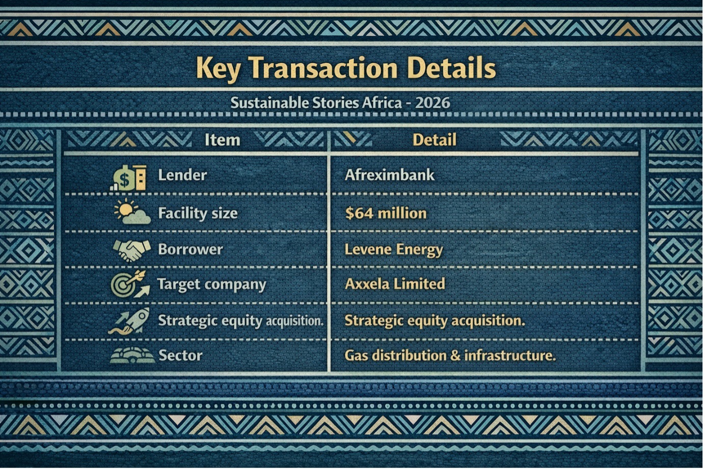 The African Export-Import Bank (Afreximbank) has approved a $64 million financing facility for Levene Energy to acquire a strategic equity stake in Axxela Limited, a Nigerian gas distribution and infrastructure company.