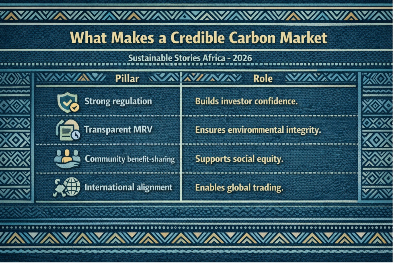 Africa's carbon-market strategy hinges on strong governance, credible standards, and community-centred project design.
