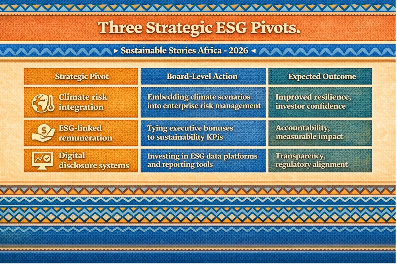 African boards are moving from ESG awareness to structural integration. The priority now is institutionalising oversight through formal committees and measurable KPIs.