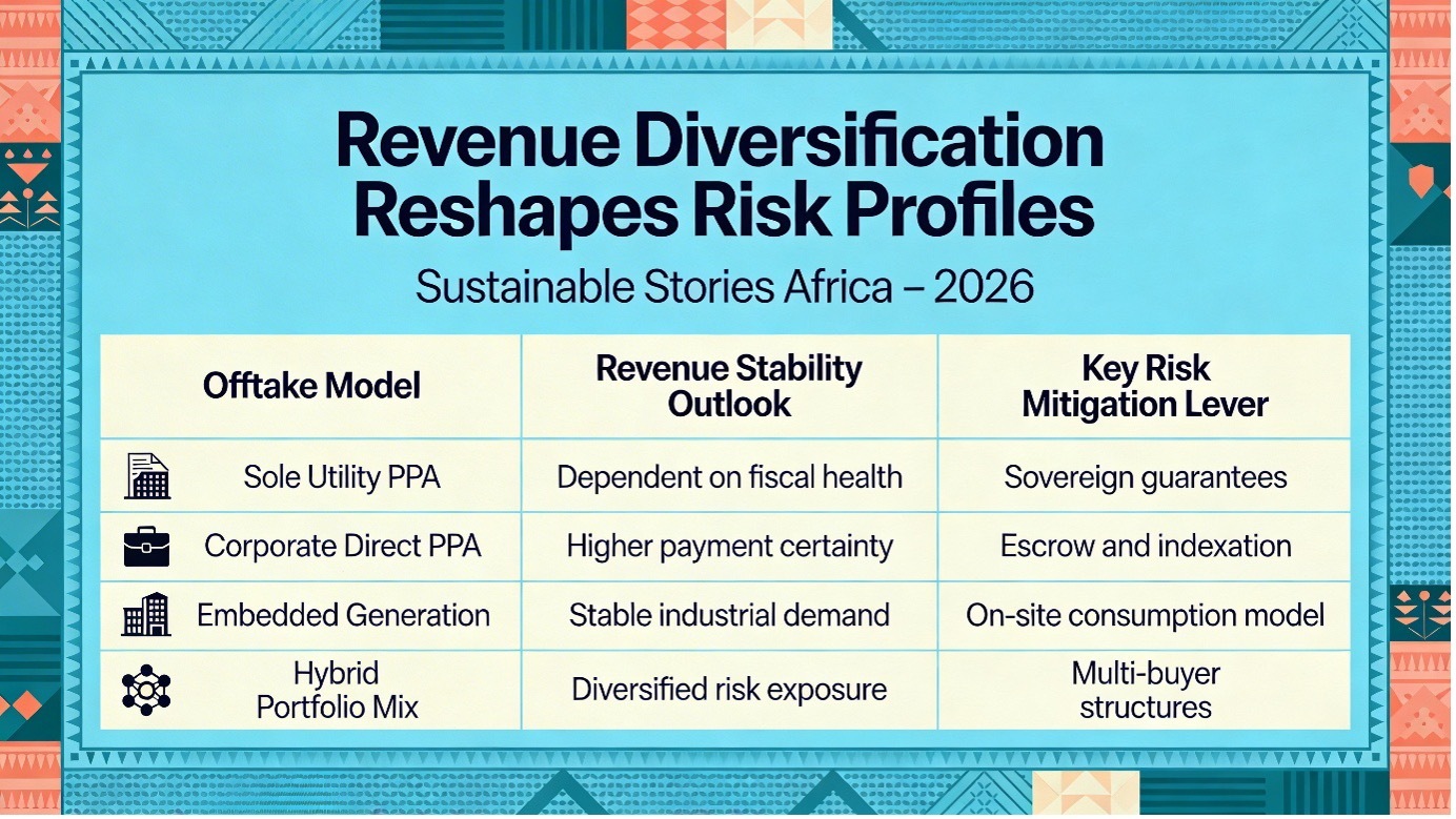 Financial institutions increasingly favour blended offtake portfolios over single-utility exposure, particularly in markets with volatile public balance sheets.