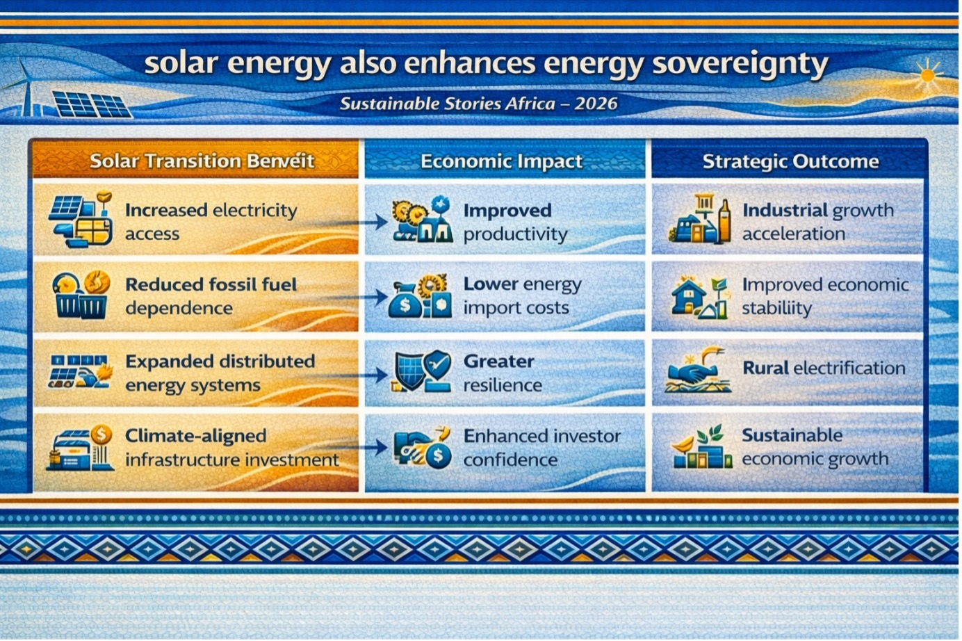 The deployment of solar energy also enhances energy sovereignty by reducing reliance on imported fossil fuels, improving trade balances, and strengthening macroeconomic resilience.