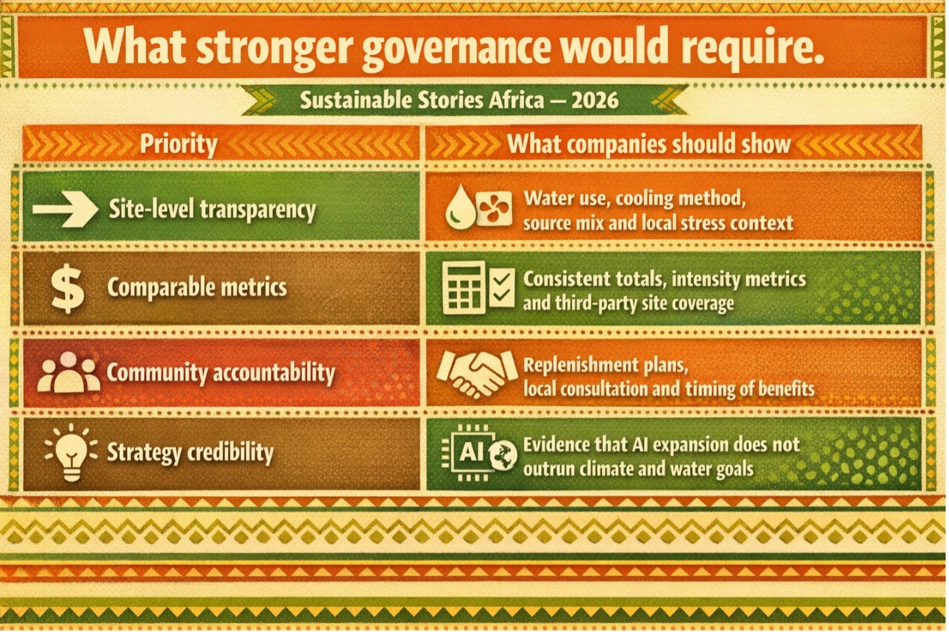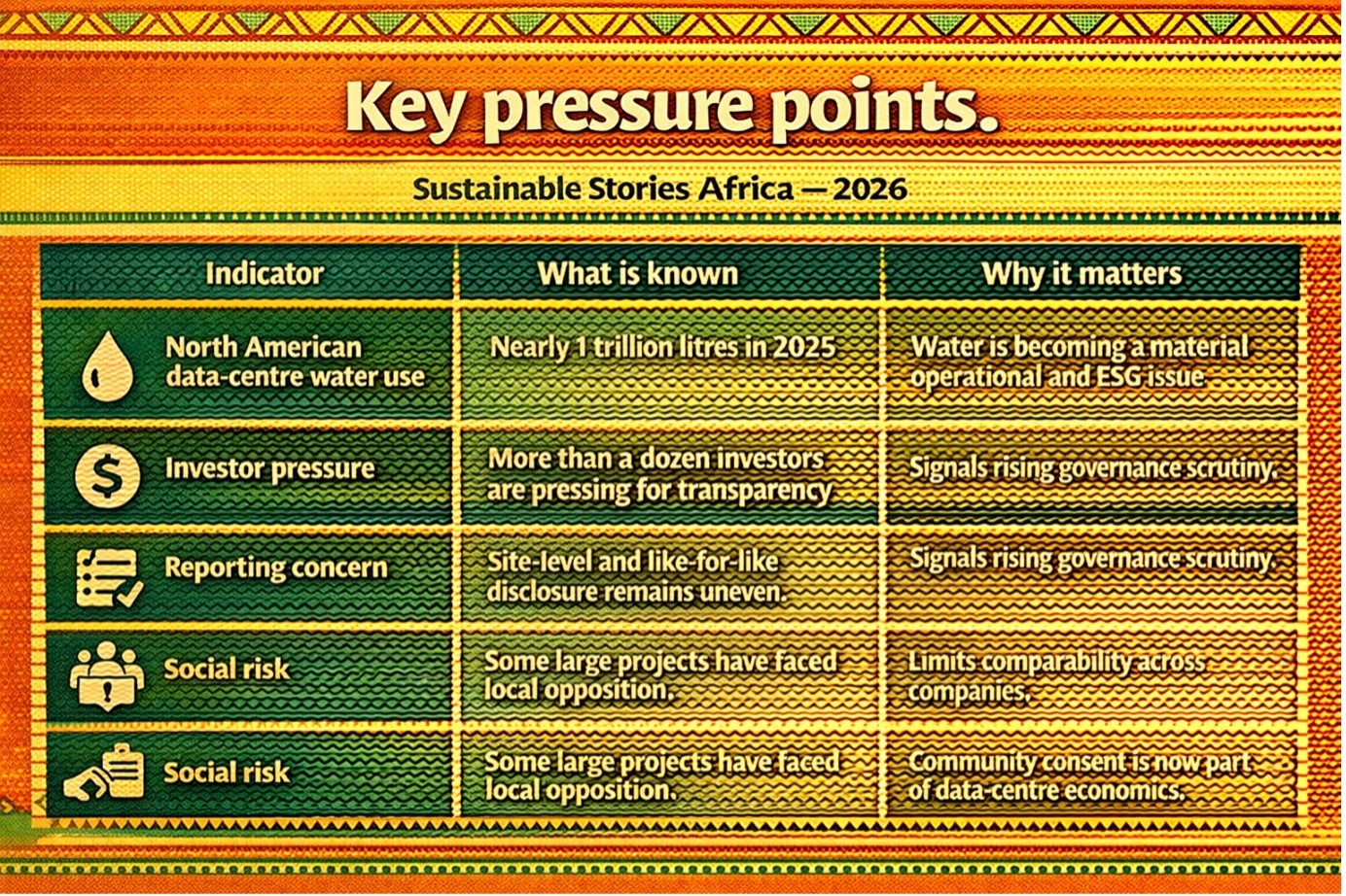 For African markets, this is an early warning and a planning opportunity: build digital infrastructure, but embed water stewardship, community consent and disclosure discipline from the start.